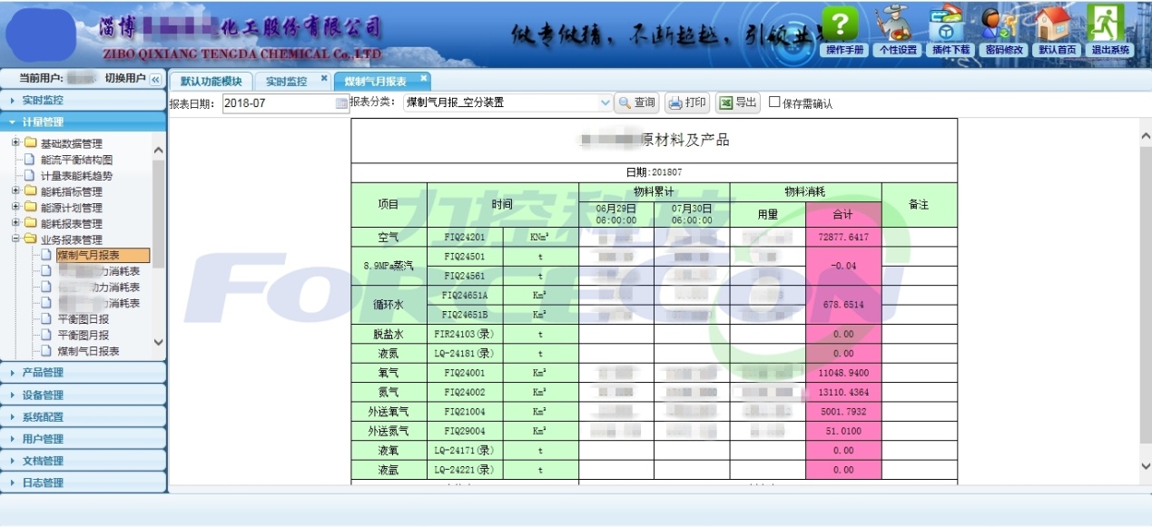 系統(tǒng)匯總自動(dòng)采集的能源計(jì)量數(shù)據(jù)和手工補(bǔ)充錄入的能源計(jì)量數(shù)據(jù),針對(duì)單個(gè)耗能裝置或耗能考核單元,基于能源平衡模型按同類能源介質(zhì)進(jìn)行能源供給、消耗、損耗的平衡計(jì)算,生成能源統(tǒng)計(jì)系列報(bào)表。統(tǒng)計(jì)項(xiàng)包括:各種能源介質(zhì)的采購(gòu)量、自產(chǎn)量、消耗量、銷售量、損失量等信息。