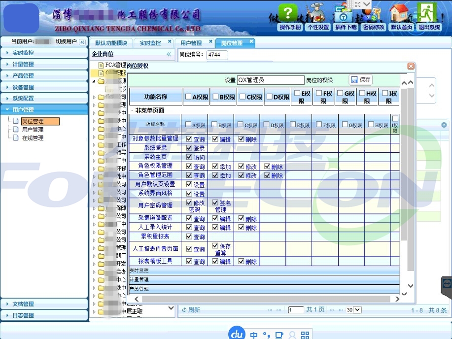 生產(chǎn)信息化系統(tǒng)平臺(tái)權(quán)限設(shè)置基本思想是根據(jù)客戶的人事組織架構(gòu),以崗位劃分為基礎(chǔ),對(duì)不同崗位的人員授予不同的權(quán)限,可以授權(quán)到具體某個(gè)人可以查看某廠區(qū)、工藝段的某工藝畫(huà)面和能源報(bào)表等,結(jié)合不同崗位人員關(guān)注方向,形成一人一看板。信息平臺(tái)的系統(tǒng)用戶登錄數(shù)量是不受限制的,即通過(guò)瀏覽器登錄信息平臺(tái)的用戶數(shù)量不做限制,具體到某一用戶的權(quán)限可以根據(jù)現(xiàn)實(shí)的需求做具體的授權(quán)。