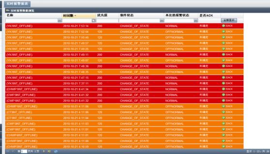 報警服務(wù)器是一個靈活的分布式報警構(gòu)架,具備強(qiáng)大的報警存儲、統(tǒng)計、分析、顯示、查詢、事件觸發(fā)、打印等功能,并可以和語音、視頻、多媒體進(jìn)行聯(lián)動,來完成一個大型生產(chǎn)報警管理系統(tǒng)。 每個可能出現(xiàn)的報警有四種狀態(tài):報警未消失未被確認(rèn)、報警未消失 已被確認(rèn)、報警消失未被確認(rèn)、報警消失已被確認(rèn)。監(jiān)控計算機(jī)顯示畫面的頂部或底部設(shè)置一個報警條,在報警條內(nèi)顯示最近三個報警未消失未被確認(rèn)報警的詳細(xì)內(nèi)容,操作員通過畫面切換選擇報警表,報警表內(nèi)顯示監(jiān)控計算機(jī)中配置的所有報警列表及報警的詳細(xì)內(nèi)容。報警的詳細(xì)內(nèi)容包括:報警的當(dāng)前狀態(tài)、每個“未消失”的報警發(fā)生時間、每個“消失”的報警發(fā)生時間及“消失”的時間、每個“已確認(rèn)”的報警 的確認(rèn)時間和用戶。當(dāng)報警出現(xiàn)時,報警打印機(jī)可立即打印報警信息。