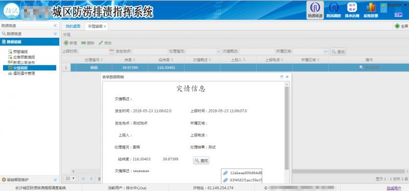 汛情發(fā)生后,通過已被調(diào)度的各個(gè)模塊來對事故進(jìn)行處理,合理安排泵站的抽排水、搶險(xiǎn)車輛和搶險(xiǎn)隊(duì)伍等對人員物資的搶救,按照應(yīng)急預(yù)案有條不紊的應(yīng)對各種突發(fā)事故。對已經(jīng)完成的搶險(xiǎn)救災(zāi)任務(wù)形成簡報(bào),地圖展示位置信息,可查看處理結(jié)果,對搶險(xiǎn)救災(zāi)任務(wù)進(jìn)行總結(jié),用最優(yōu)的措施保障人民生命財(cái)產(chǎn)安全。