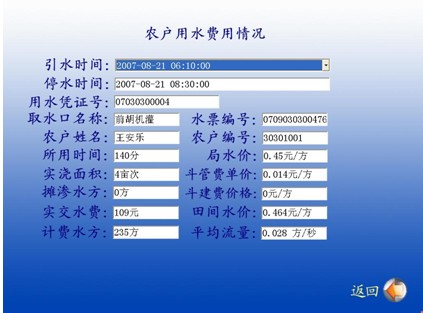 由綜合數(shù)據(jù)庫服務(wù)器、信息傳輸系統(tǒng)、各泵站、水管站現(xiàn)場工作站及分布于灌區(qū)各典型收益村鎮(zhèn)、各用水大戶等處的電腦顯示系統(tǒng)、電腦觸摸屏查詢系統(tǒng)等組成。該系統(tǒng)運用計算機語音仿真技術(shù)和網(wǎng)絡(luò)通信技術(shù),可使灌區(qū)所有水管職工和用水戶及社會各界人士隨時對自己及他人各類灌溉用水參數(shù)、水量及水費繳納情況進行電話查詢和電腦觸摸屏查詢,并能查詢灌區(qū)管理機構(gòu)、灌溉管理知識、水價優(yōu)惠政策等相關(guān)信息,使灌區(qū)供用水情況及灌區(qū)管理情況完全置于廣大用水戶的公開監(jiān)督之下,從而使灌溉管理透明化、公開化,徹底杜絕以水謀私等各類不正之風,更好服務(wù)于灌區(qū)用水戶及區(qū)域經(jīng)濟發(fā)展。