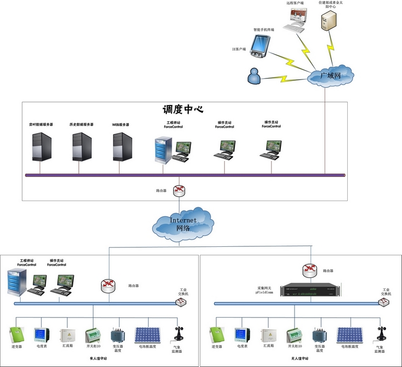 功能:實現(xiàn)采集分散的光伏電站子系統(tǒng)的大量數(shù)據(jù)、歷史數(shù)據(jù)存儲、WEB發(fā)布等。