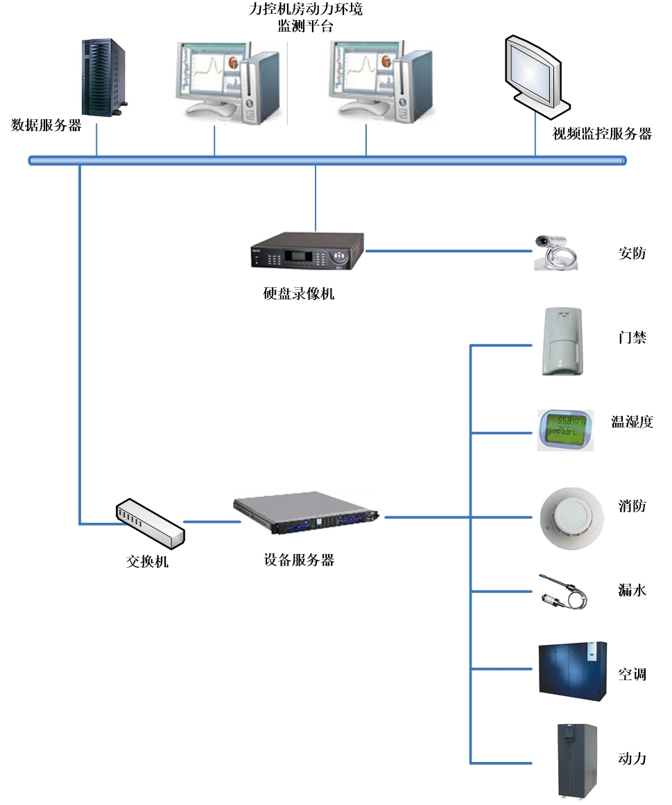 為了解決上述問題,本系統(tǒng)的設計和建設目的是實時監(jiān)測機房環(huán)境的各項指標,遇到機房停電、電源故障、環(huán)境溫度過高、空調運行異常、空調停機、非法闖入、火災和漏水等緊急意外情況,能夠及時記錄、查詢和自動快速報警。采用計算機、通信、網(wǎng)絡、四遙(遙測、遙信、遙控、遙視)技術,利用現(xiàn)有的Internet網(wǎng)絡環(huán)境,構成一個一體化、網(wǎng)絡化的集中監(jiān)控系統(tǒng),可以在計算機屏幕上看到監(jiān)控點的圖形畫面,了解監(jiān)控點的信息,提高機房的可靠運行能力,提升機房日常維護效率,降低維護成本和勞動強度。