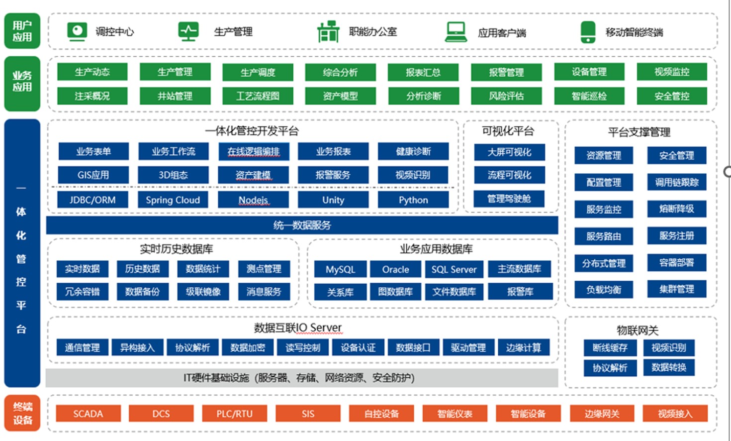 力控智慧油庫一體化管控項目以力控工業(yè)軟硬件為基礎,融合云平臺技術,打造管控一體化整體解決方案,實現(xiàn)OT與IT深度融合。平臺采用低代碼在線開發(fā)+基礎應用組件模式,支持業(yè)務快速迭代與擴展,滿足企業(yè)長期發(fā)展需求。