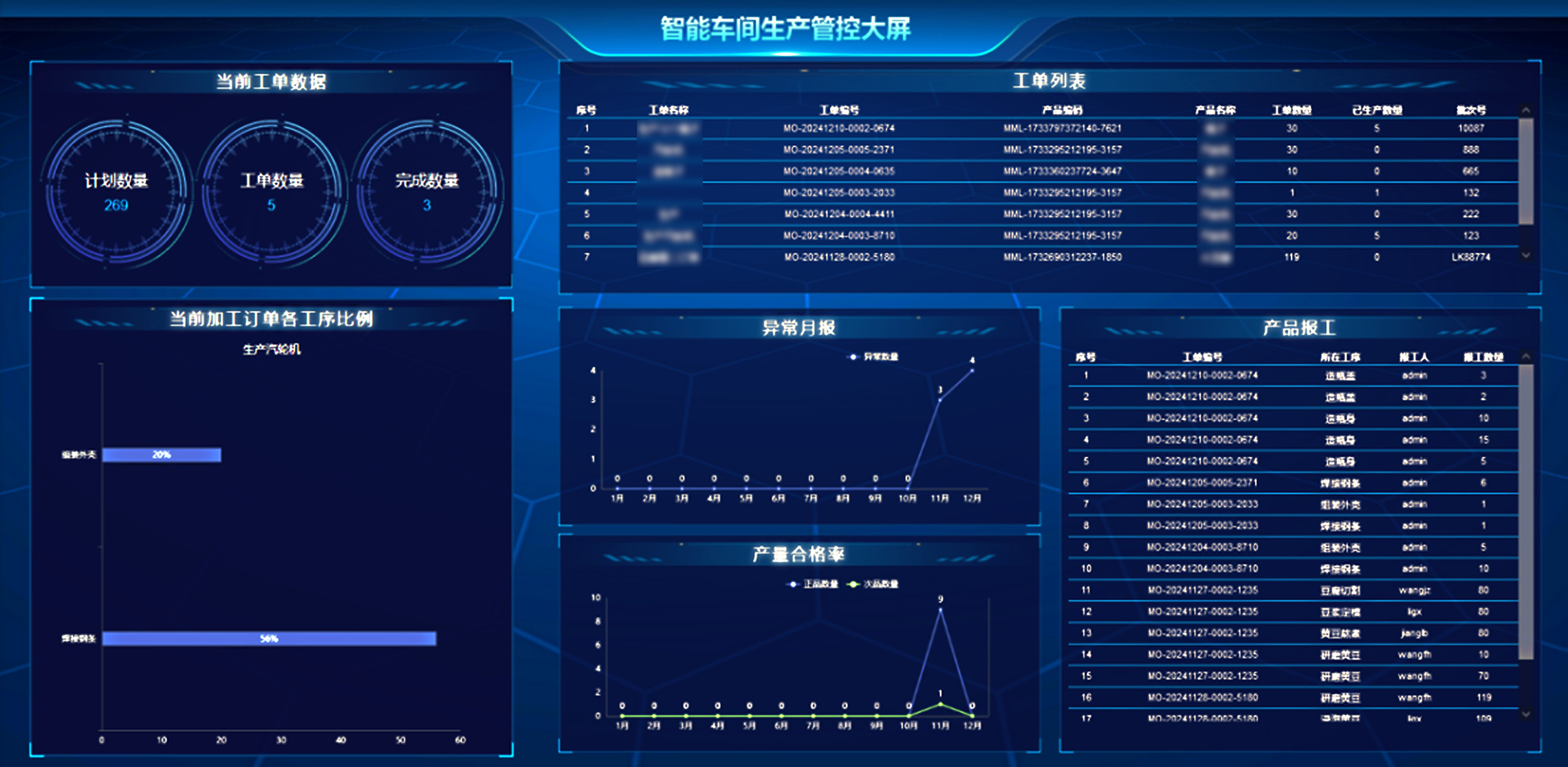 工單達(dá)成率、產(chǎn)品良率等數(shù)據(jù)通過可視化大屏展示,便于管理人員實(shí)時(shí)掌握生產(chǎn)進(jìn)度與質(zhì)量指標(biāo),做出更加科學(xué)合理的決策。