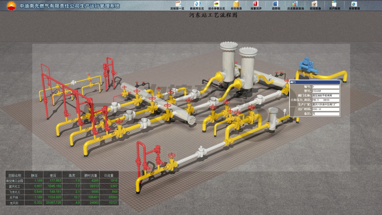 本軟件通過對中煤科工西安研究院地熱供暖泵房、主辦公樓及周邊輔助建筑物的供暖制冷需求搭建高精度1:1三維模型和工藝數(shù)學模型,通過三維可視化監(jiān)控界面實現(xiàn)主要供暖、制冷區(qū)域的溫濕度監(jiān)測,及泵房主要設備溫度、流量、壓力等運行參數(shù)監(jiān)控;結(jié)合工藝數(shù)學模型仿真計算結(jié)果、提供運行控制參數(shù)合理化建議;整個系統(tǒng)具備歷史數(shù)據(jù)查詢、分析、能耗管理、仿真培訓、設備運行參數(shù)優(yōu)化等功能,該項目的成功實施起到了推廣數(shù)字孿生平臺應用、促進兩化融合的先進示范效應。