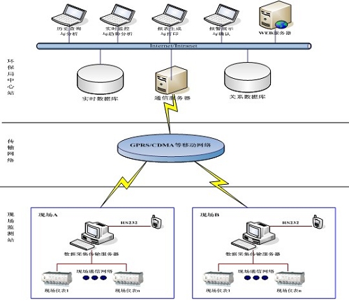 采用先進(jìn)的SCADA軟件與物聯(lián)網(wǎng)技術(shù)相結(jié)合,對(duì)環(huán)保設(shè)備及關(guān)鍵運(yùn)行參數(shù)進(jìn)行實(shí)時(shí)監(jiān)控,同時(shí)將采集到的數(shù)據(jù)存儲(chǔ)到遠(yuǎn)端專(zhuān)用服務(wù)器,并以人機(jī)界面還原展示現(xiàn)場(chǎng)工藝過(guò)程,管理部門(mén)可以通過(guò)互聯(lián)網(wǎng)進(jìn)行登陸、查看、監(jiān)督,使監(jiān)管更加有力、直觀、科學(xué),杜絕了治理設(shè)施不運(yùn)行的現(xiàn)象。