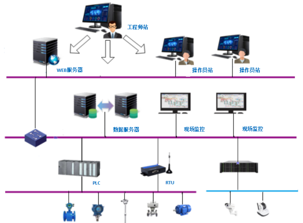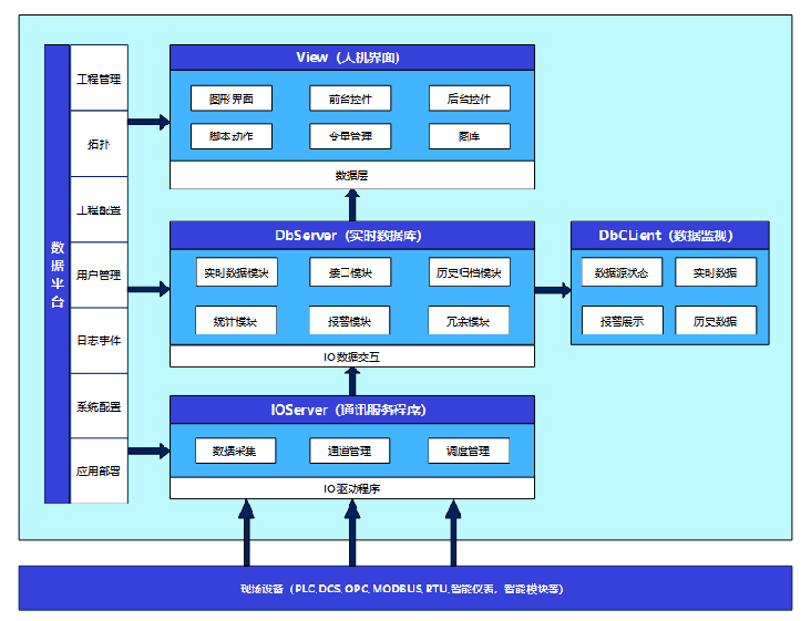 ForceSCADA應用于企業(yè)調度級生產(chǎn)管理,針對無人值守站及客戶端工程多且復雜的特性,可通過工程數(shù)據(jù)管理平臺“遠程部署”構筑工程師站和客戶端站,實現(xiàn)對整個系統(tǒng)工程的統(tǒng)一管理。