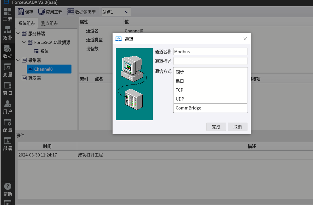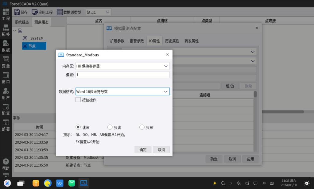 在ForceSCADA中,為用戶(hù)提供了Modbus協(xié)議的采集驅(qū)動(dòng),只需要進(jìn)行簡(jiǎn)單的配置就可以完成數(shù)據(jù)的采集,配合ForceSCADA組態(tài)軟件進(jìn)行數(shù)據(jù)的展示以及處理。