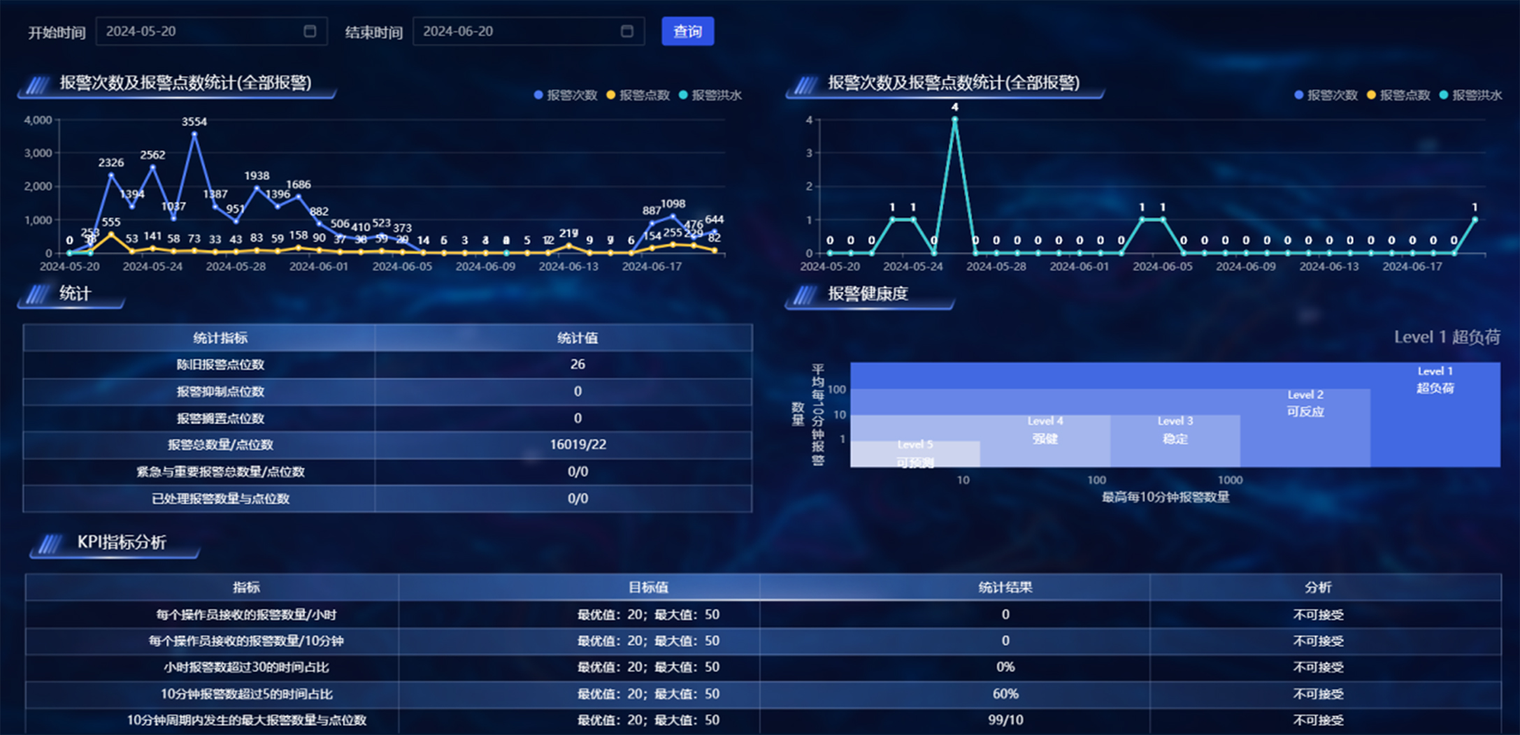 具備報警數(shù)據(jù)多維度分析評估功能,實(shí)現(xiàn)對生產(chǎn)過程中報警的在線實(shí)時監(jiān)測與故障分析,為裝置人員進(jìn)行報警處置與消除優(yōu)化提供指導(dǎo);